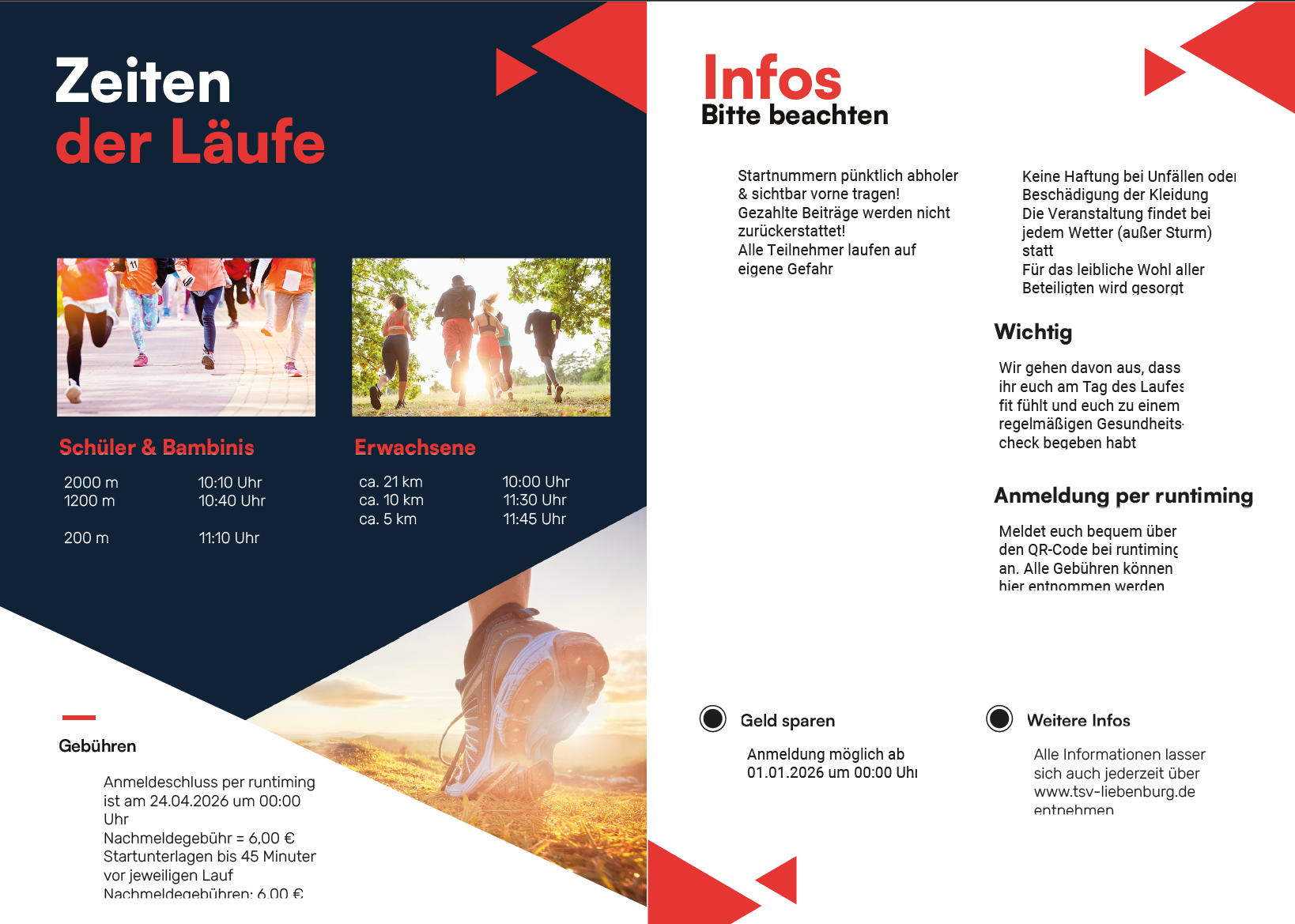 Links: Flyer 2026 Vorderseite und Rückseite, die Anmeldegebühren